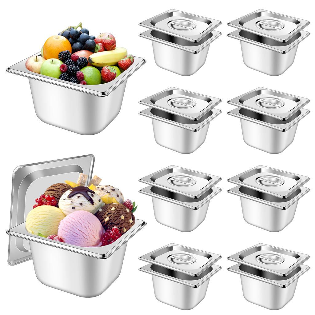10 Set 1/6 Size Stainless Steel Hotel Pans With Lids 4" Deep Steam Table Pan Food Pan Lid With Handled Catering Food Storage Met