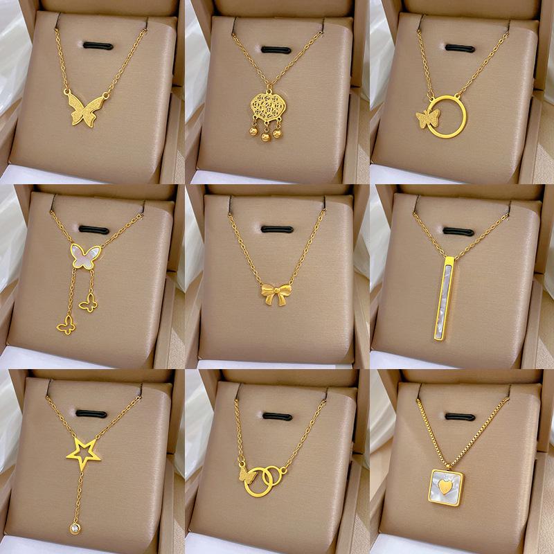 Full Titanium Steel Geometric Animal Minimalist Real Gold Necklace for Women - Collarbone Chain