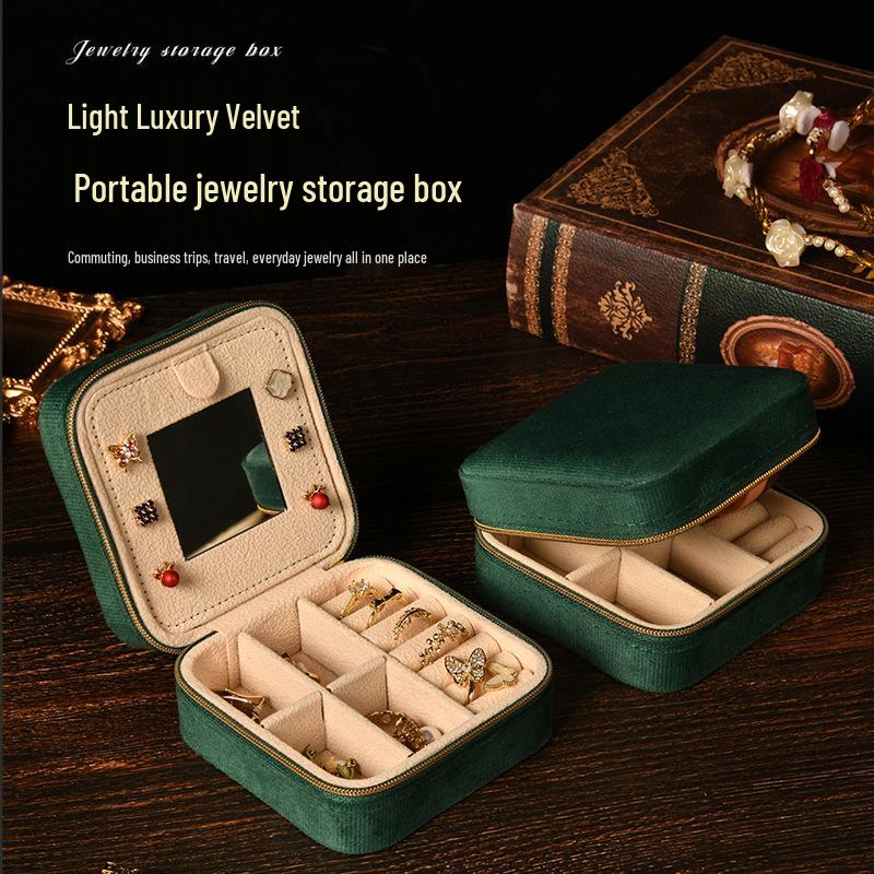Elegant Velvet Jewelry Box with Mirror for Necklaces, Rings, and Earrings