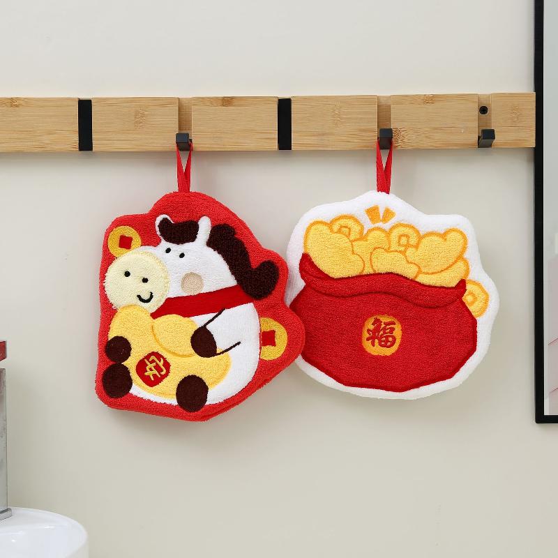 Cute Cartoon New Year Money Bag Horse Hand Towel For Kitchen Bathroom Handkerchief Thick Absorbent Coral Fleece Hanging Towel