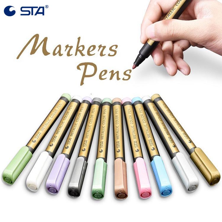 Sta 8151 Color Metal Marker Pens – 10 Vibrant Colors for Photo Albums, Black Cardboard, and DIY Drawing Projects.