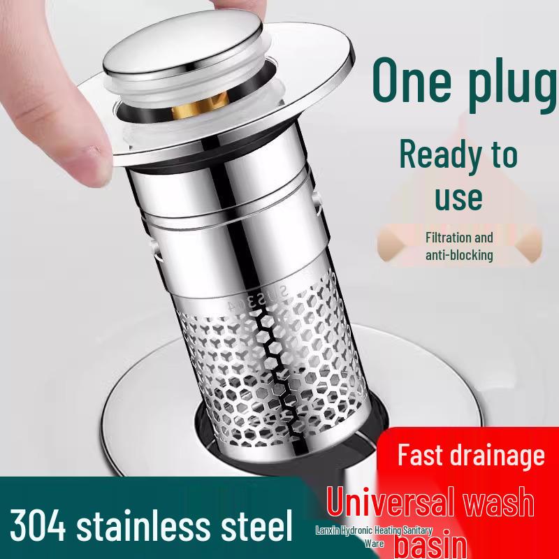 Push-Type Sink Leak Stopper: Universal Bounce Core Drainer & Deodorant Filter for Washbasins