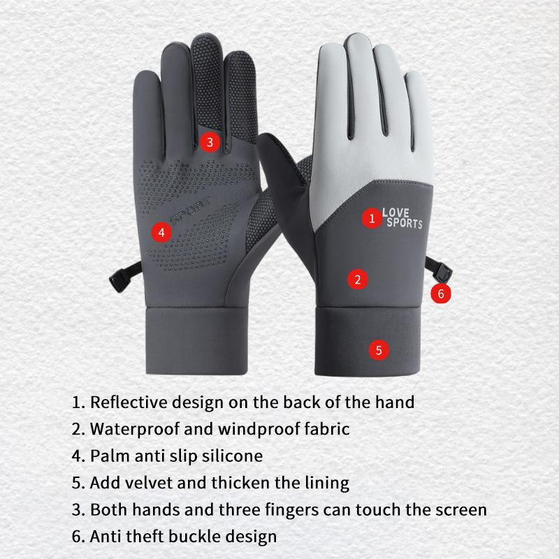 Windproof And Waterproof Outdoor Gloves Touch Screen Thumb And Index Finger Fingertips Warm Gloves For Running Cycling