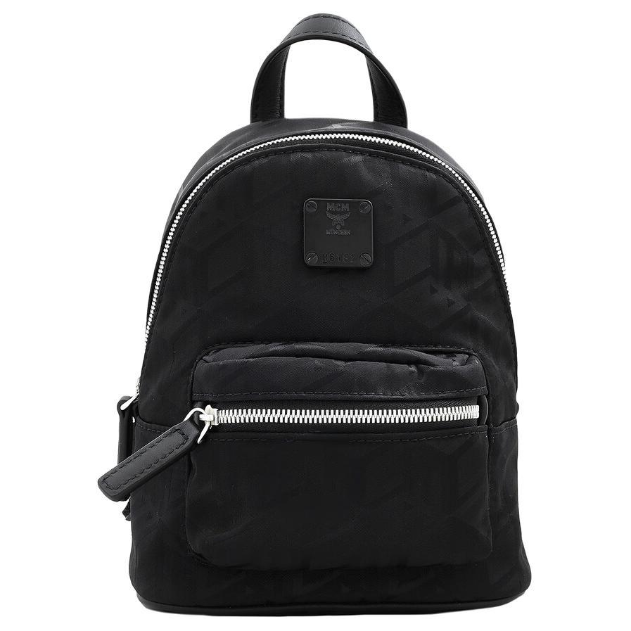MCM Stark Bebe Boo Geometric Pattern Nylon Leather Mini Backpack Unisex backpack Black MMKDSVE04BK001