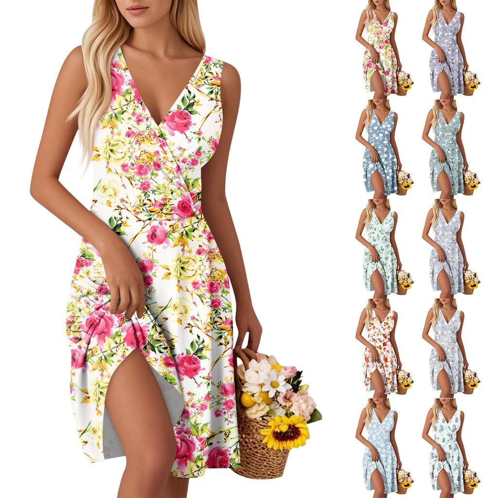 Women's Fashion V-Neck Waist Printed Sleeveless Vest Dresses Decoration: Material:This skirts for women made of soft, lightweight, and breathable fabric, comfortable and high quality. A must-have item in your vacation wardrobe! Design: This Boho dress is a beautiful maxi skirt, has a V-neckline,short sleeves, bohemian beach.Bright and unique floral prints help to your personality.High-waisted and extra-long dresses highlight your long legs while helping to hide your imperfections. Occasion:For Birthday party, Cocktail party, Clubbing, Evening Dinner, Night out, Casualwear, Streetwear, Beach, Musical Festival. The perfect Partywear and any Night Clubwear and Going out dress. What to Wear:Great to with all kinds of jewelry, high heels, summer sandals,hat, necklace, jacket.When the weather is cold, matching coat is a great choice. NOTE:No ,Please do not wash together with sharp subjects, Machine wash and hand wash,Hang Or Line Dry. 1PC Dressr
