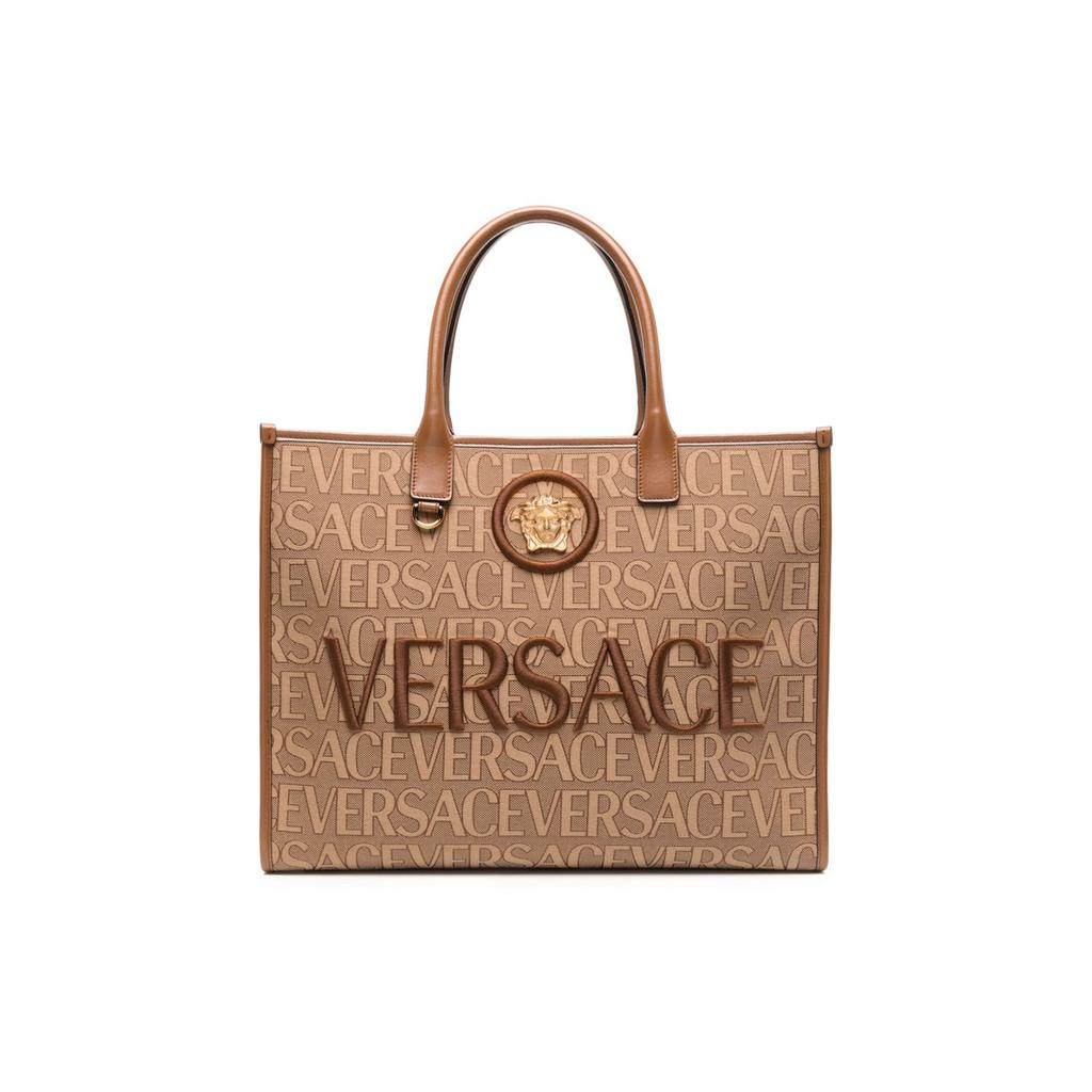 Versace Letter Embroidery Logo Medusa Classic Monogram Snap Button Tote Bag Women tote bags Brown 1004741-1A08199-2N24V