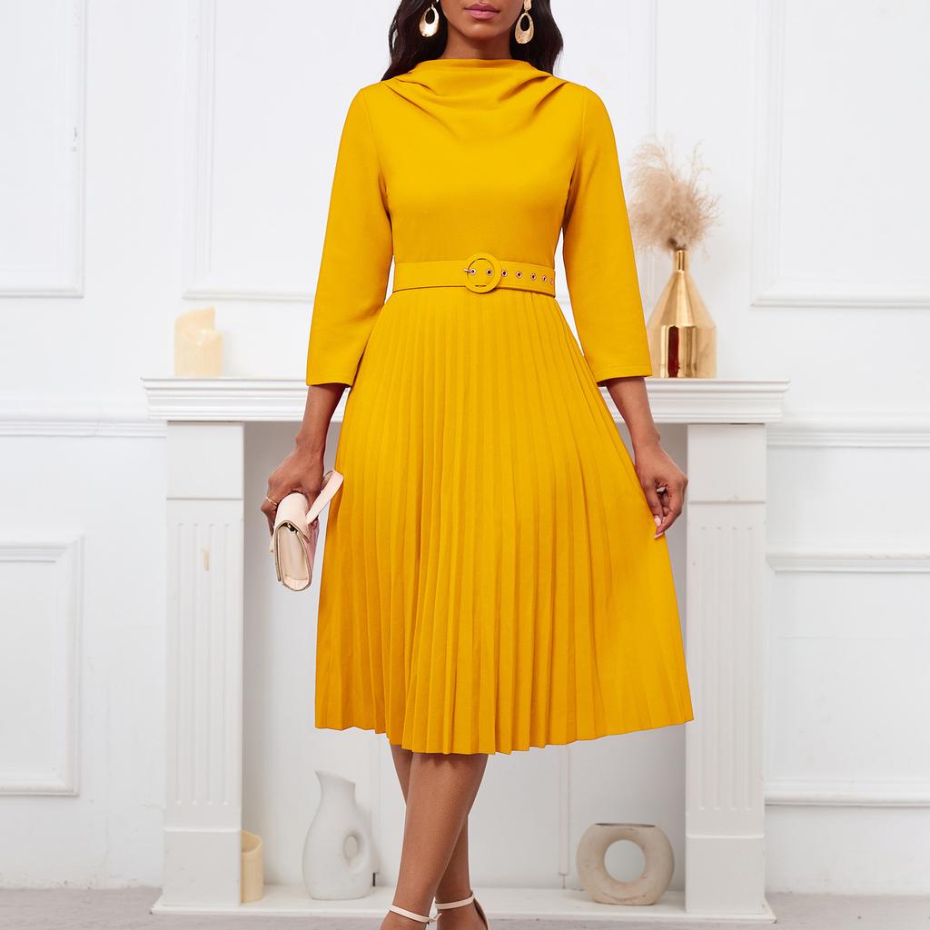 New women's clothing fashion temperament elegant pleated skirt elegant solid color large size dress
