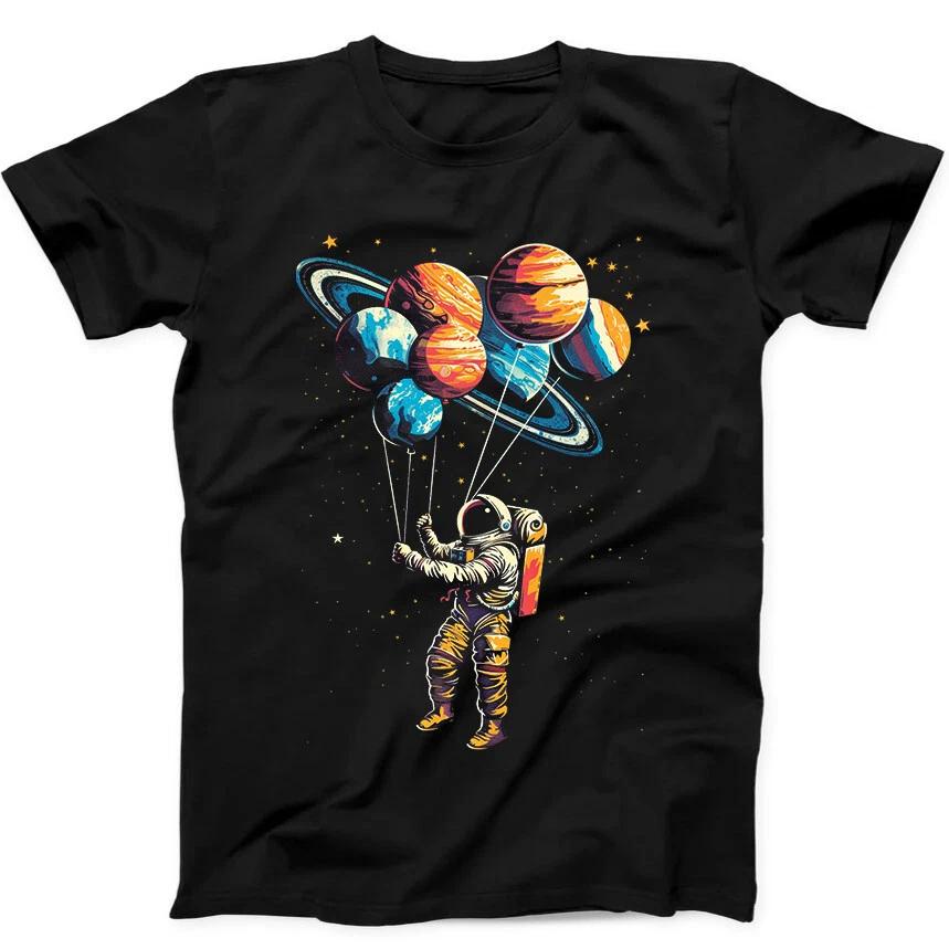 Astronaut in Space Planets Balloons Solar System Funny Gift Black T Shirt 238