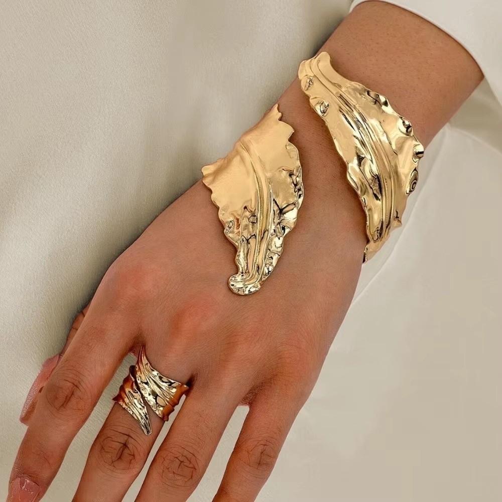 Spiral Opening Pleated Leaf Bracelet Gold Jewelry Accessories 2025 Ring Set For Women Girls