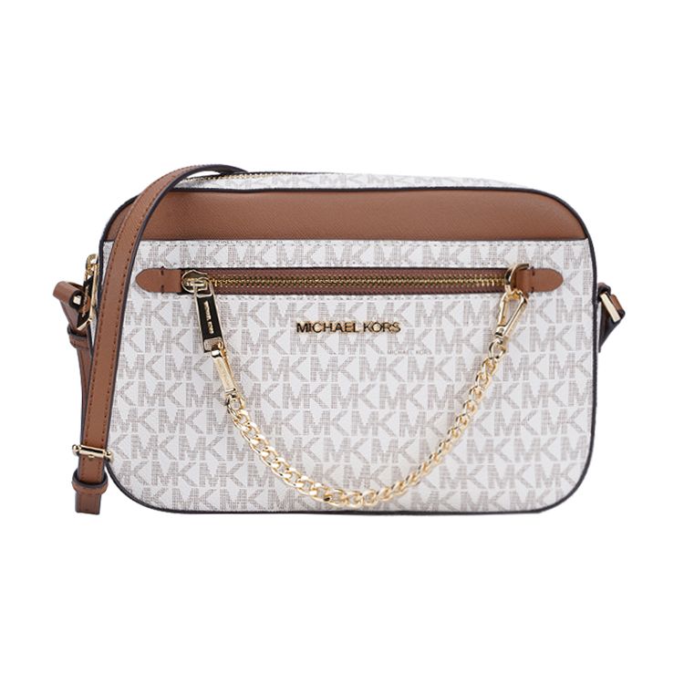 Michael Kors Mk Jet Set Monogram Logolu Zincirli Kamera Çantası Kadın Omuz Çantası Vanilya 35S1GTTC9B-VANILLA