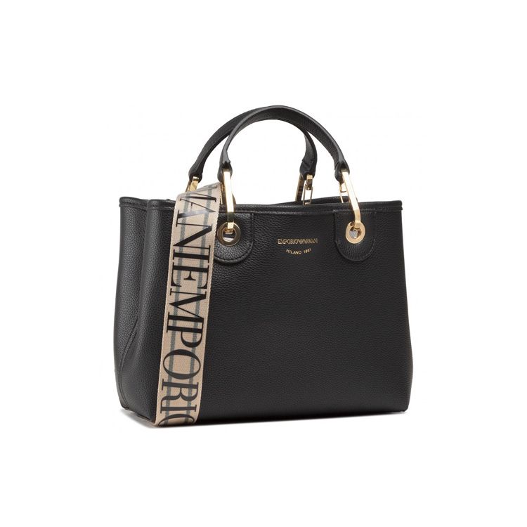 Emporio Armani Logo Print Magnetic Closure Polyester Shoulder Bag Women bags Black Y3D176-YFO5B-85218