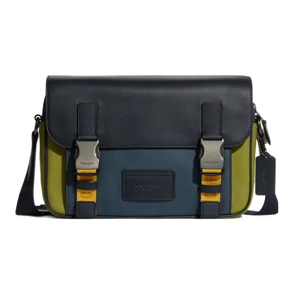 Coach Track 27 Color Block Zip Flap Adjustable Shoulder Strap Leather Crossbody Bag Unisex Shoulder Bag Black Blue Green C8131-QBTP3