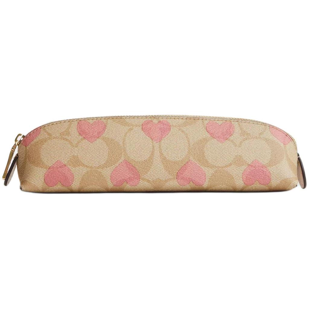 Coach Pencil Case 20 Heart Print Logo Coated Canvas And Leather Small Storage Bag Women Pencil Case Gold Light-Khaki Pink CP380-IMOTV