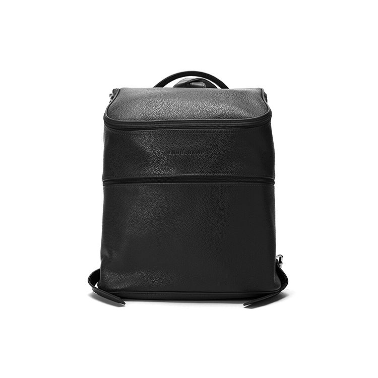 Longchamp Le Foulonné Solid Color Zipper Leather Backpack Medium Men backpack Black 1617021047