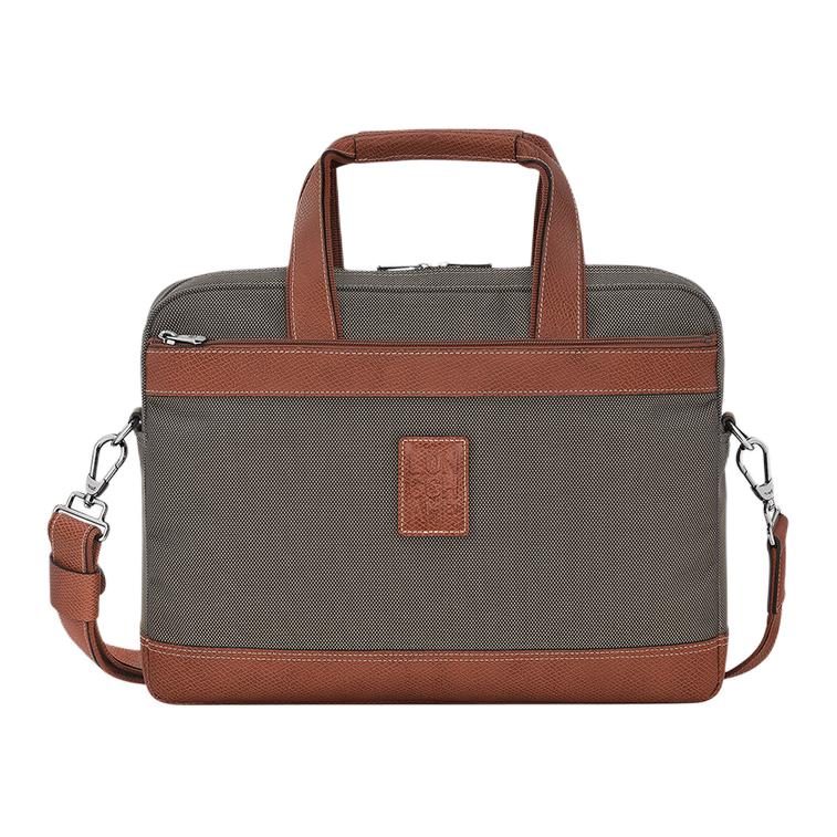 Longchamp Boxford Zipper Closure Fabric And Leather Crossbody Laptop Briefcase Handbag Shoulder Bag Men bags Military-Green Brown 1486080042