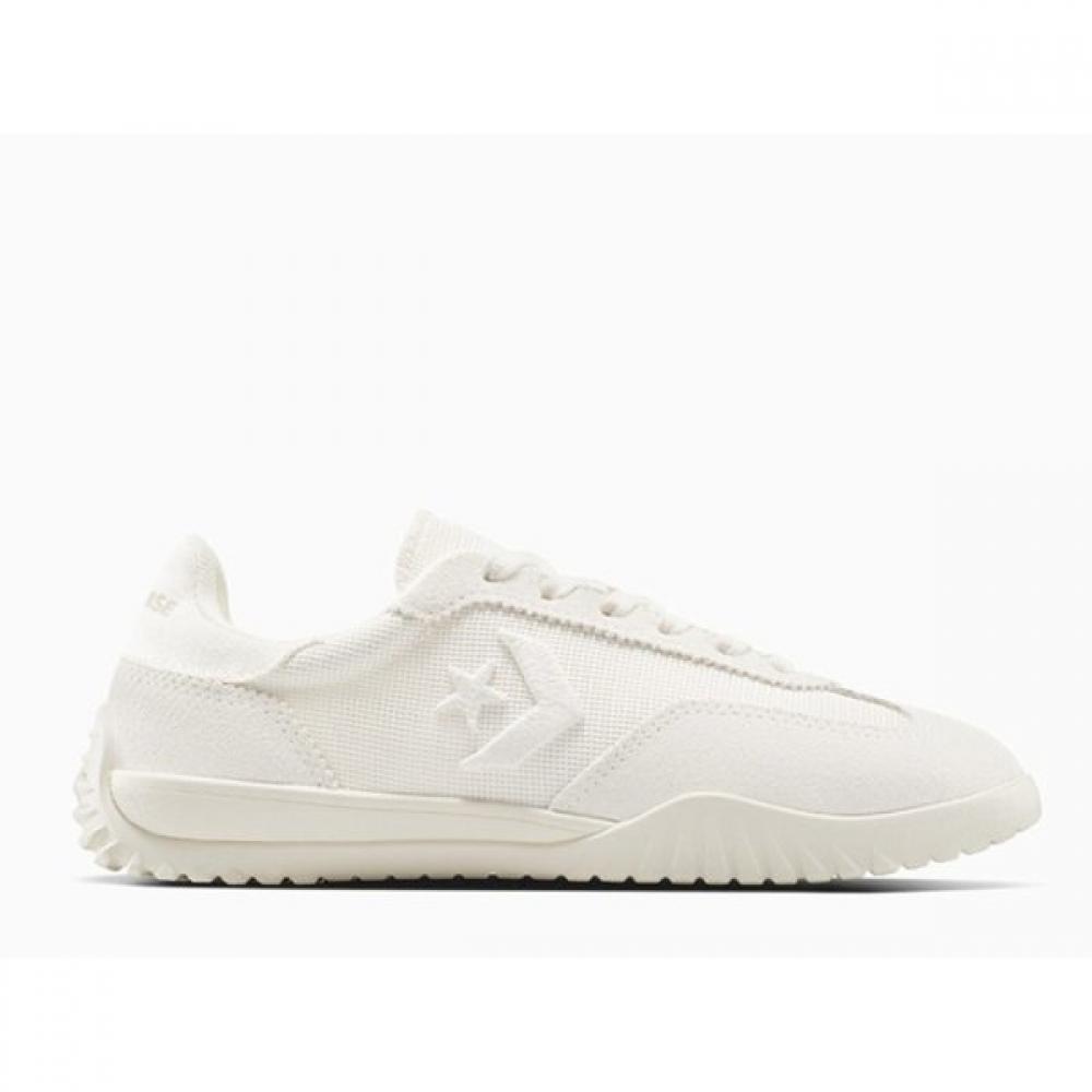 The Converse Run Star Trainer Eggret A12196C is a sneaker type featuring a sleek white design. It uses low-top canvas material to provide flexibility and is equipped with a rubber outsole. This product is designed for comfortable wear.