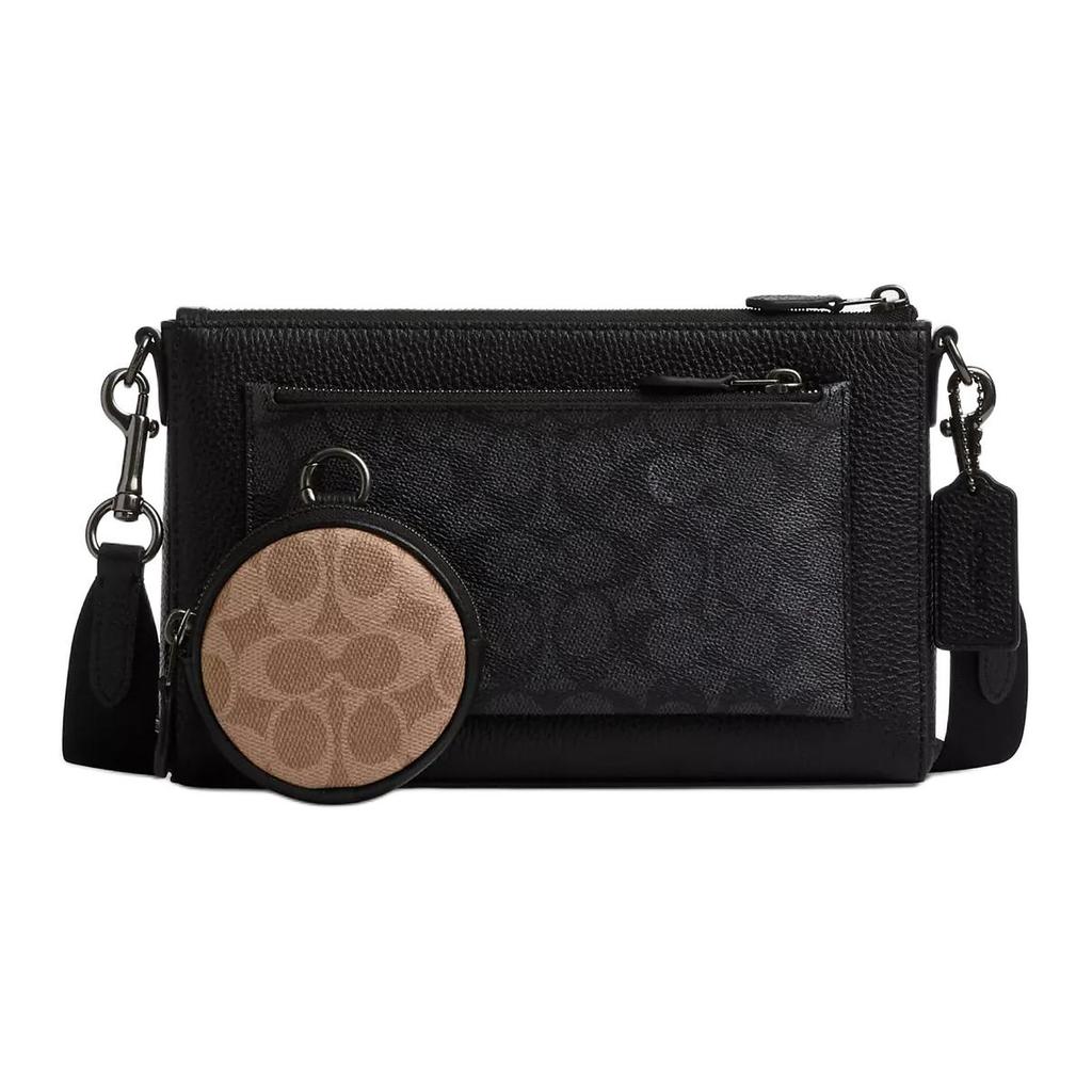 Coach Holden 26 Monogram Logo Embossed Pendant Fabric And Leather Shoulder Crossbody Bag Medium Men bags Brown Black CW372-QBXAJ