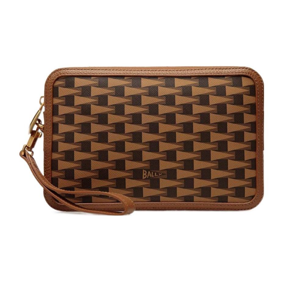 Bally Vintage Triangle Flag Print Zipper Clutch Leather Wristlet Men clutch Brown 6304859