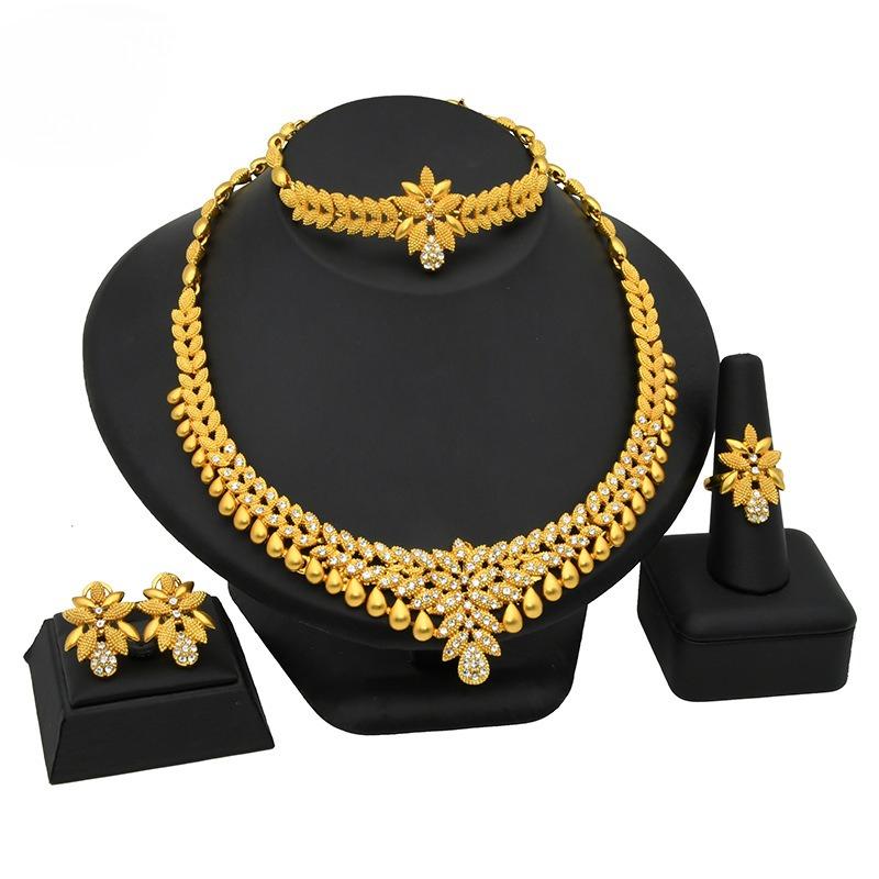Dubai Bridal Necklace Bracelet Earrings Ring Four-piece Nigerian Flower Rhinestone Jewelry Set 2026