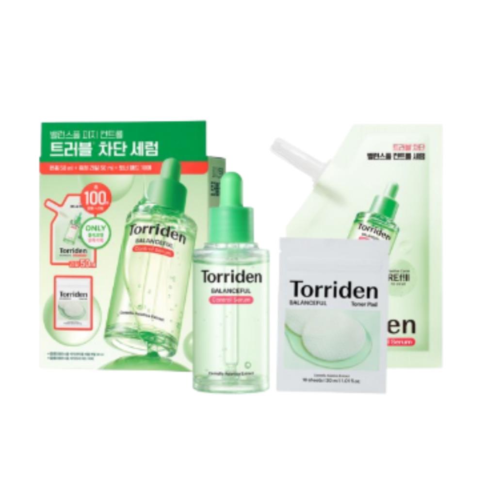 The Torriden Balanceful Cica Control Serum delivers calming relief and balanced hydration for sensitive, irritated, or reactive skin. Formulated with centella and a cica‑complex, this serum helps strengthen the skin barrier, reduce redness, and support long‑lasting moisture. This limited edition set includes the original 50ml serum, a 50ml refill, and 10 calming pads for convenient soothing care anytime.