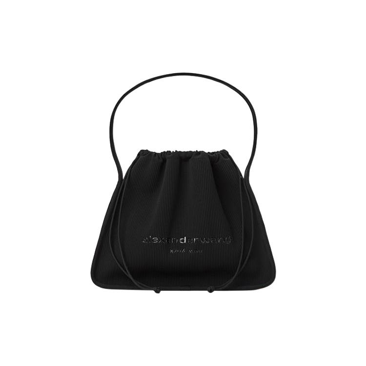 Alexander Wang Ryan brand logo printed drawstring closure knitted polyester handbag large female black