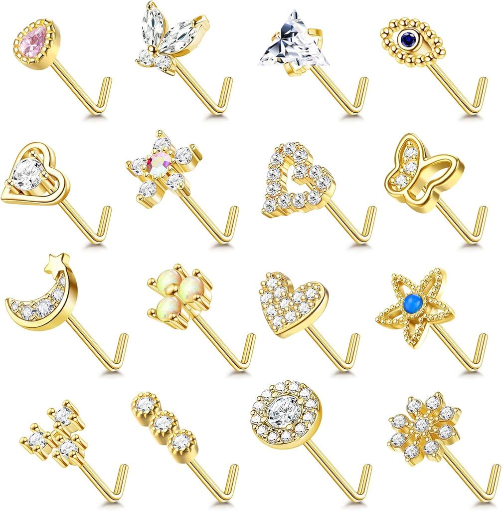 Bobisty 20G Surgical Steel Nose Studs L Shaped Opal CZ Heart Butterfly Elegant Piercing Jewelry for Women
