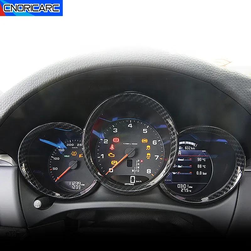 Carbon Fiber Color Dashboard Oil Meter Circles Frame Decoration Sticker Trim For Porsche Macan 2014-21 Interior Car Accessories