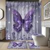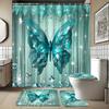 4PCS Luxury Diamond Butterfly Bathroom Set, Waterproof Shower Curtain with Non-slip Rugs, U-shaped Mat Toilet Cover 12 Hooks