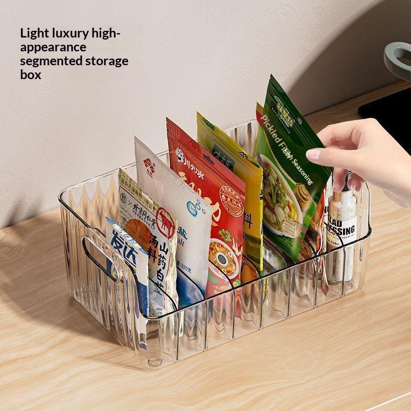 Clear Plastic Seasoning Storage Box With 5 Adjustable Divider Versatile Kitchen Organizer For Spices, Snacks And Small Items