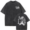 Fashion Gothic T Shirt Male Oversized Tees Washed Vintage Rock Band Korn Falling Away From Me Tshirt Skeleton Print T-shirts