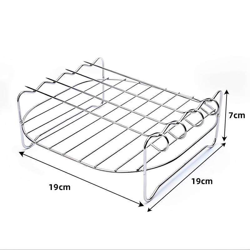 8 Inch Outdoor Grill Set with Skewers Square Air Fryer Grill Steamer Stainless Steel Barbecue Bracket BBQ Air Fryer Accessories