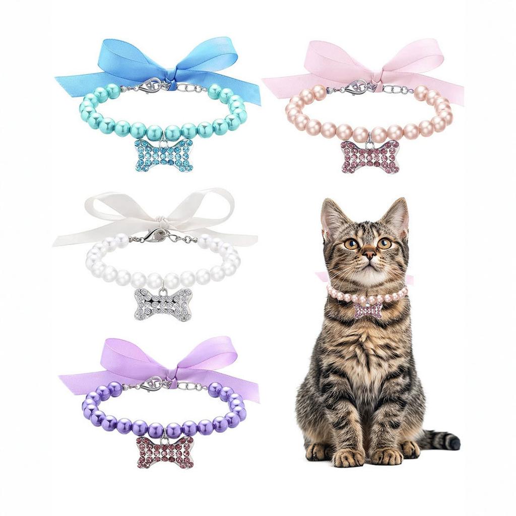 Pet Pearl Necklace Collar with & Heart Rhinestone Pendant for Small Dogs Cats