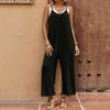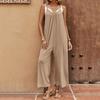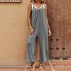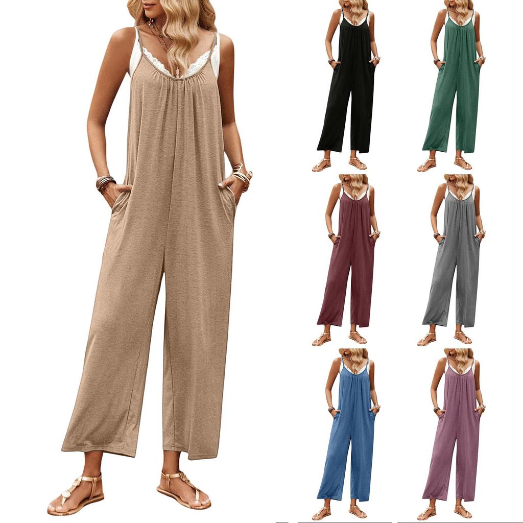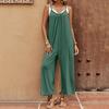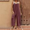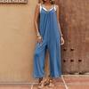 Women's Casual -Color Pleated Pocket Backless Loose Shoulder Strap Adjustable Jumpsuit
