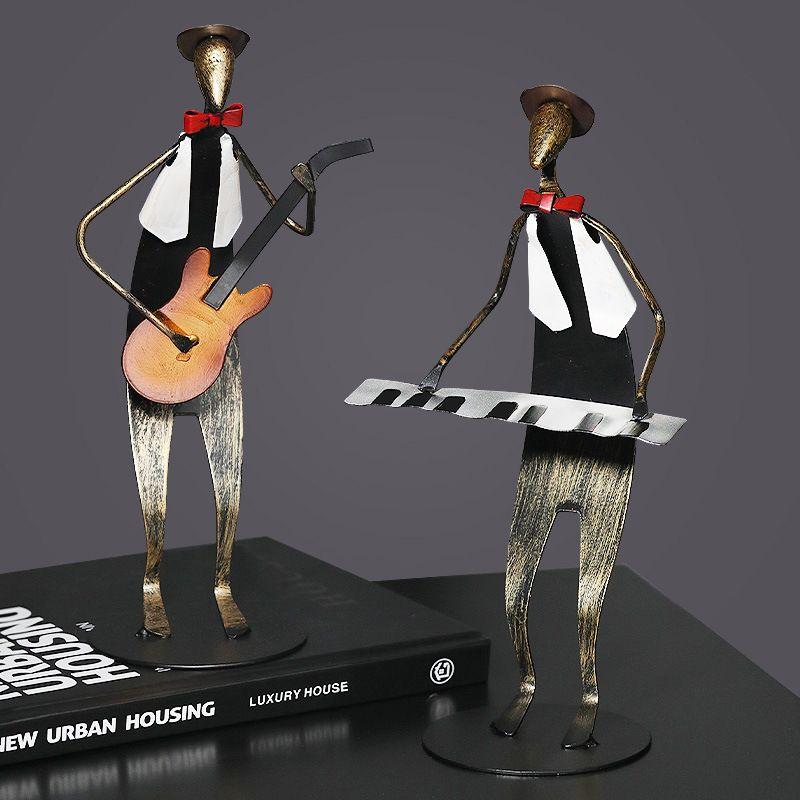 Wrought Iron Musician Figurines Handicrafts Home Study Room Desktop Sculpture Decoration Cafe Bar Club Table Statue Accessories