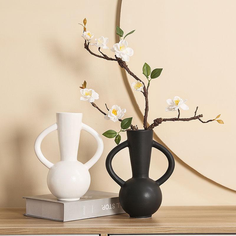 Simple Art Cutout Ceramic black Vase Living Room Dining Table Decoration Creative Amphora Special-shaped Vase Flower Home Decor