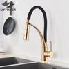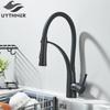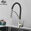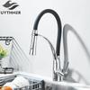 Chrome Rubber Kitchen Faucet Mixer Tap Rotation Pull Down Stream Sprayer Taps Hot Cold Water Tap One Handle Kitchen Tap