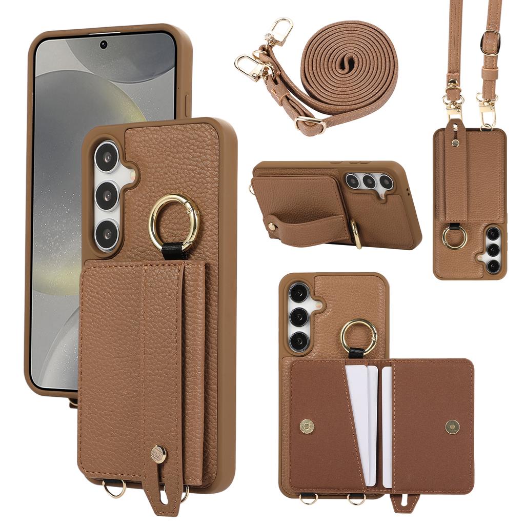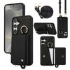 Wristband Ring Holder Magnetic Cards Solt Leather Wallet Case For Samsung S25 Ultra S24 Plus S23 S22 long Lanyard kickstandCover