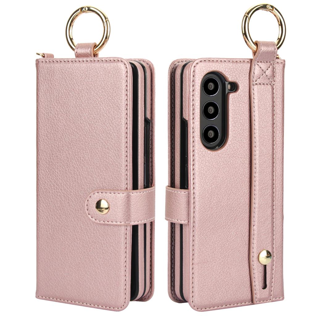 Ring Holder Cards Solt Wristband Pen Holder Wallet Case For Samsung Galaxy Z Fold 6 5 4 3 5G Fold6 Fold5 Bag Pocket Book Cover