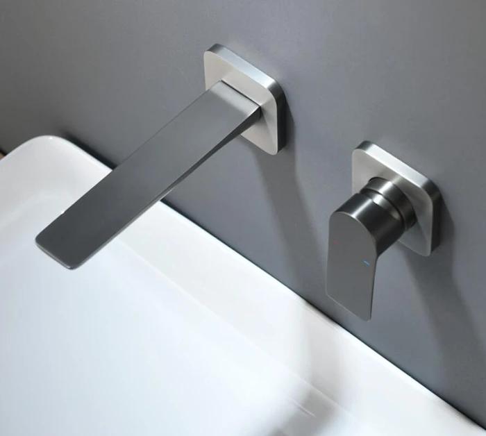 Bathroom wall mounted gunmetal faucet matt gray or brushed gold concealed mixer bathroom wall tap hot and cold wall mixer