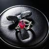 Jewelry Cultivation Ruby Emerald Leaf Ring Niche Design Red Corundum Treasure Ring Women