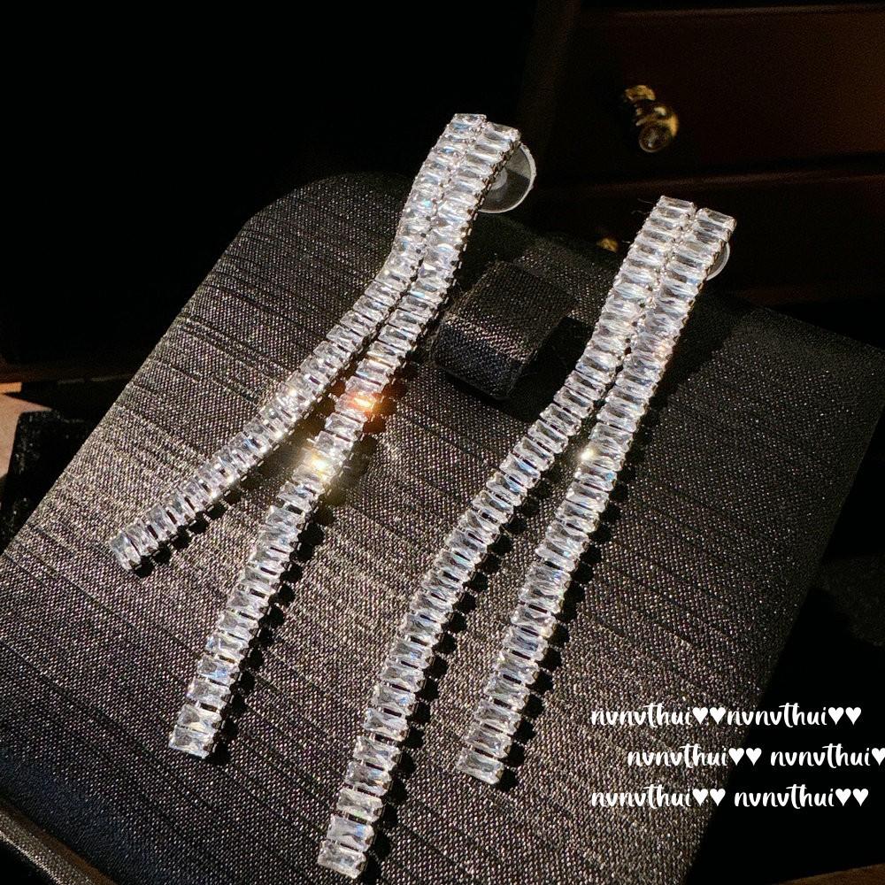 Nvnvthui Ice And Snow Frost Flower Fringed Gemstone Earrings Fujia Thousand Gold Plated 18K Gold, Sugar Cube Zircon Arc Earrings