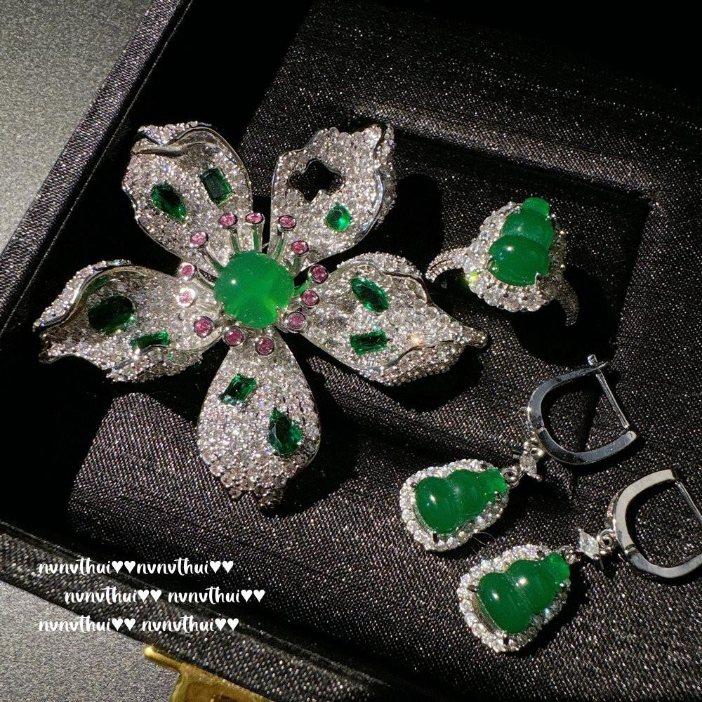 Jewelry Chalcedony Agate Gourd Earrings, Power Power Of The Same Style, Chalcedony Gourd Zircon Ring, Set