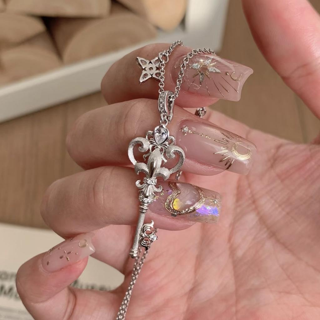 Brushed Craft Medieval Vintage Iris Key Necklace Light Luxury Niche High-End Clavicle Chain