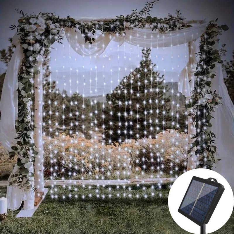 3/6M Solar Curtain Lights Wedding Decor LED Solar Outdoor Fairy Lights 8 Modes Bedroom Window Patio Garden Holiday Decorative