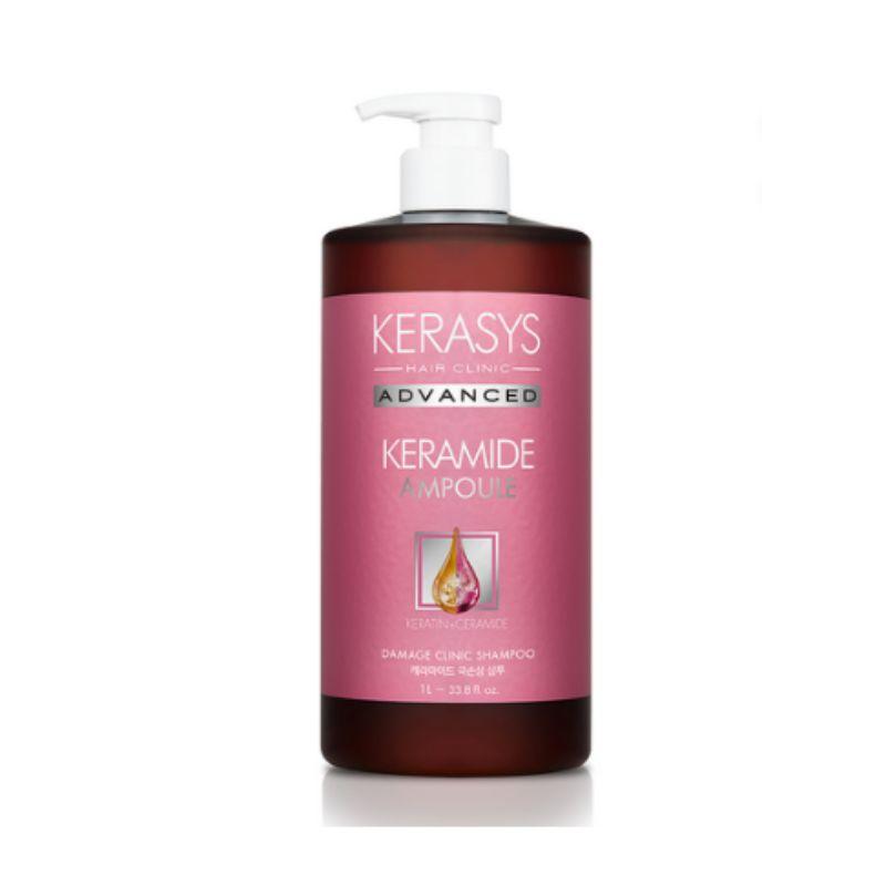 kerasys ceramide clinic shampoo, korean damaged hair shampoo, ceramide hair repair shampoo, kerasys extreme damage shampoo, moisturizing hair repair shampoo, korean hair strengthening shampoo, kerasys clinic hair care, 1L shampoo