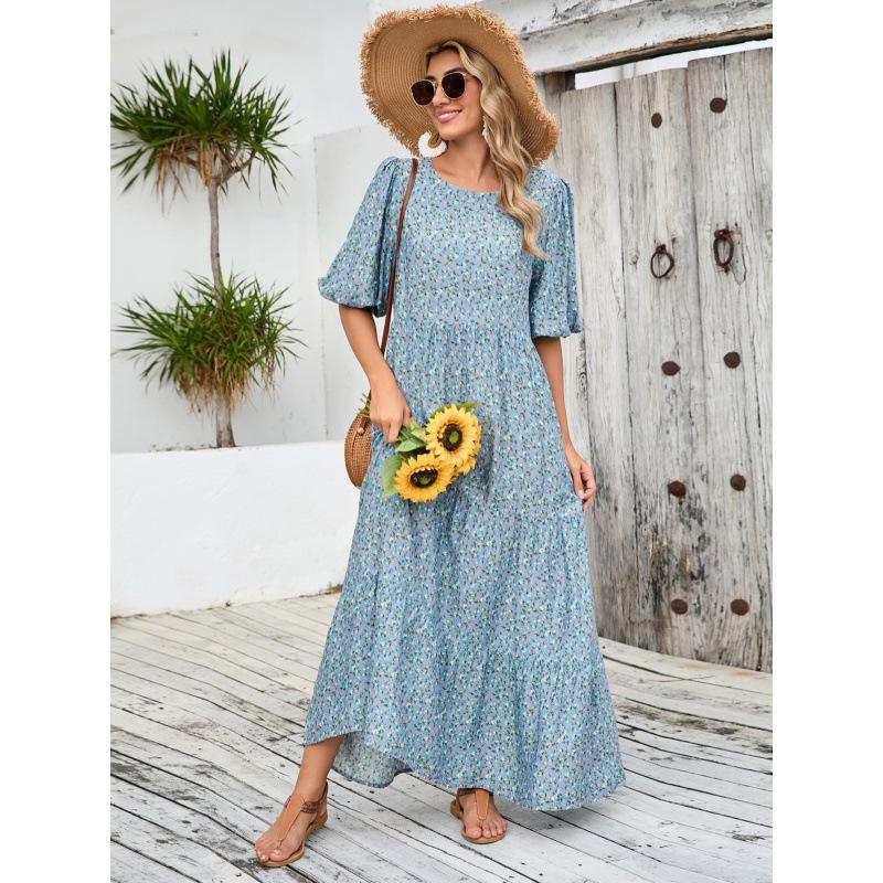 Boho Vacation Style Breathable Cotton Short Sleeve Floral Dress Plus Size Loose Long Dress Comfortable Lightweight Elegant Slimming Flattering Fit