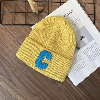 C Letter Beanie Hat For Adults Acrylic Knit Warm Cap For Fall Winter Daily Use
