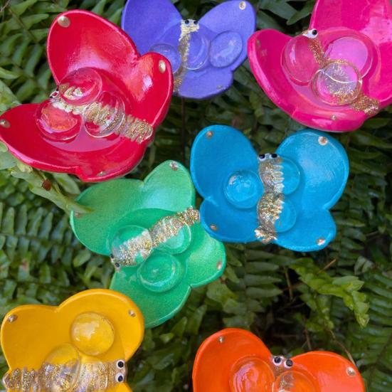 Decorative Butterfly Design That Attracts Pollinators: Shaped like a vibrant butterfly, this colorful watering station adds charm to any garden while naturally drawing in bees, butterflies, and other beneficial pollinators—beauty and function combined for your backyard, patio, or flower beds.