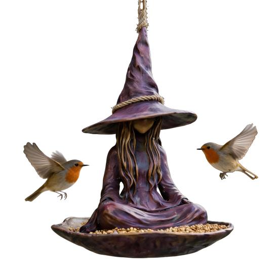 This exquisite bird feeder combines sturdy, lightweight construction with weather-resistant resin material, ensuring durability and long-lasting use. Its unique design features a charming witch statue with a bright brushed effect paint, blending traditional and modern styles to add a mystical touch to your garden, patio, or indoor space.