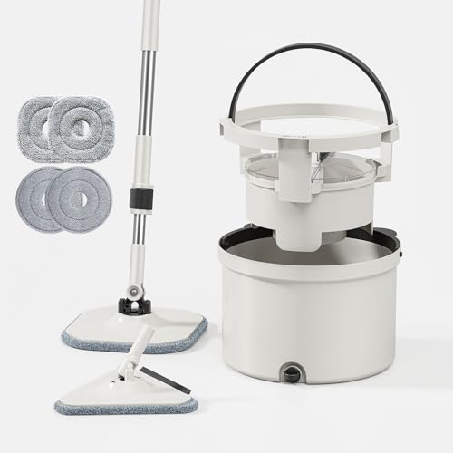HoMettler Rotating Mop, Water-Separating Mop, Wet/Dry Mopping, Water-Saving Design, Triangular Head with Squeegee, Lightweight, Gentle on Floors, Adju